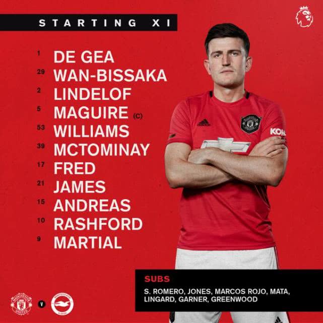 曼联VS布莱顿首发:马夏尔突前 詹姆斯拉什福德双飞翼