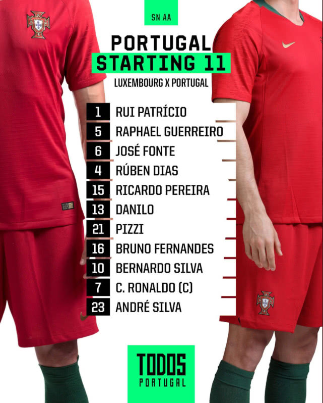 卢森堡VS葡萄牙首发:C罗领衔强阵 A席单箭头