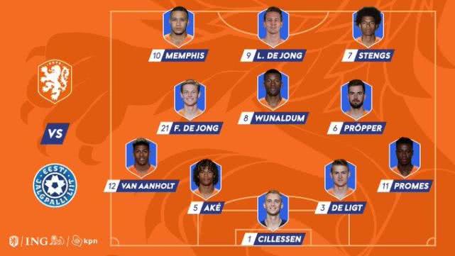 荷兰VS爱沙尼亚首发:德佩领衔出战 德利赫特坐镇防线
