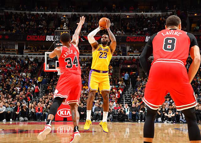 詹姆斯接连三场送出三双 湖人逆转打败公牛